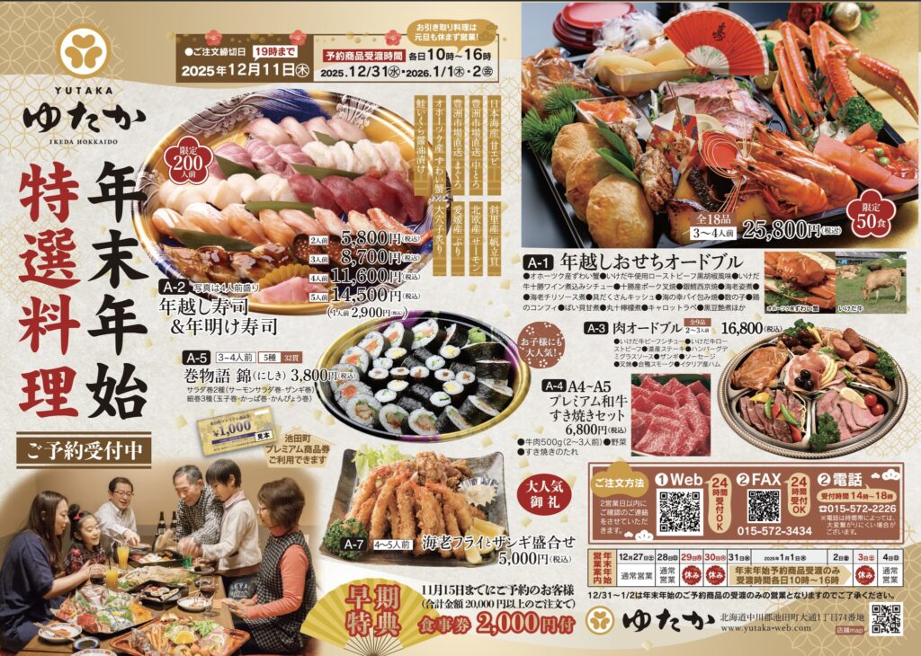 12/31〜1/2までの期間中は、年末年始の特別メニューにて承っております。